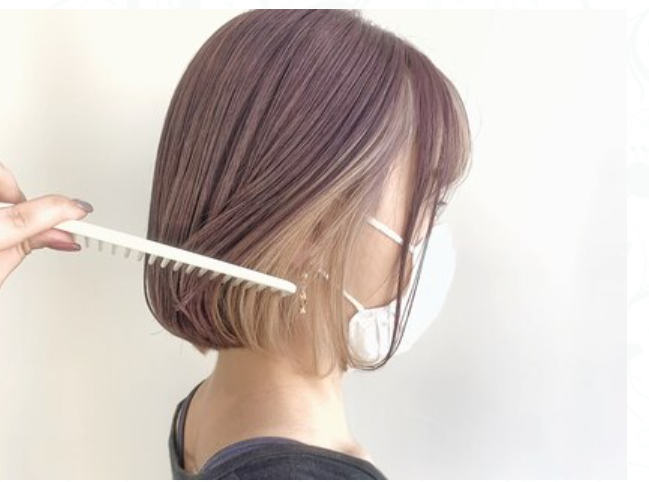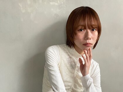 全体は透明感のあるオレンジベージュにインナーにペールトーンのオレンジベージュを*少しレイヤーの入ったボブで抜け感を◎