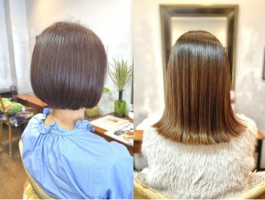 白髪染めの仕上がりも素晴らしく、髪が生き返ったようで嬉しいです。 家に帰ってからもまとまりのある艶髪が続いています。 次回は、スタッフさんおすすめの、艶々ストレートになるメニューをお願いしたいと思っています! -